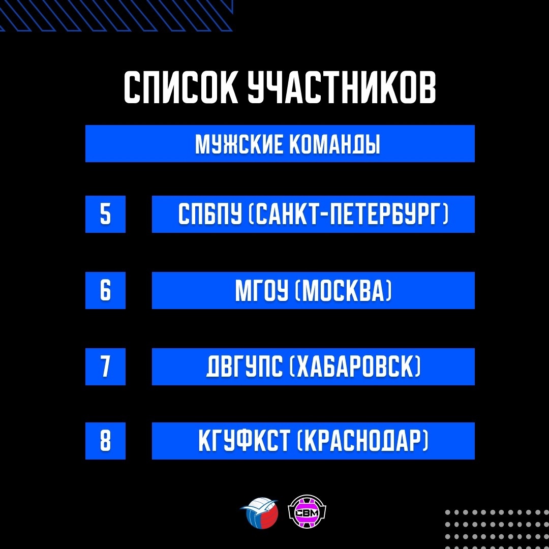 После напряженных отборочных турниров 12 лучших мужских команд завоевали свое право выступить на крупнейшем студенческом спортивном событии. Смотрите подробности в карточках и следите за обновлениями.