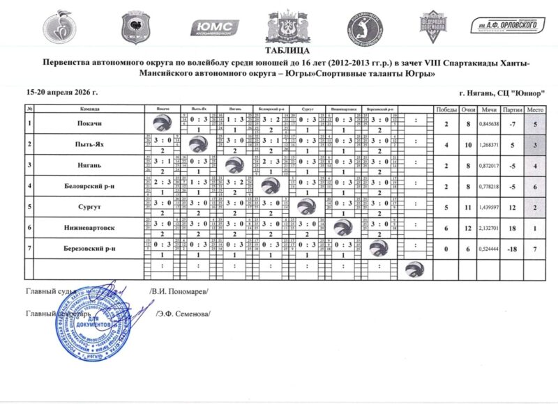 Три команды набрали по 8 очков. Их рассудило соотношение мячей в партиях. Четвертое место досталось Нягани, пятое – Покачам, шестое – Белоярскому району.