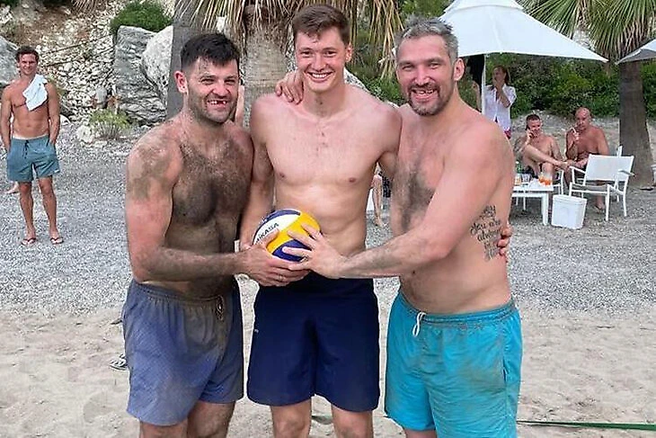 Александр Овечкин играет в волейбол в отпуске.
